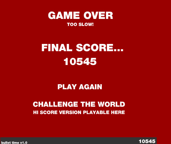 成功避過子彈,就level clear,失敗的話就如下圖的收場 - 只有死亡。